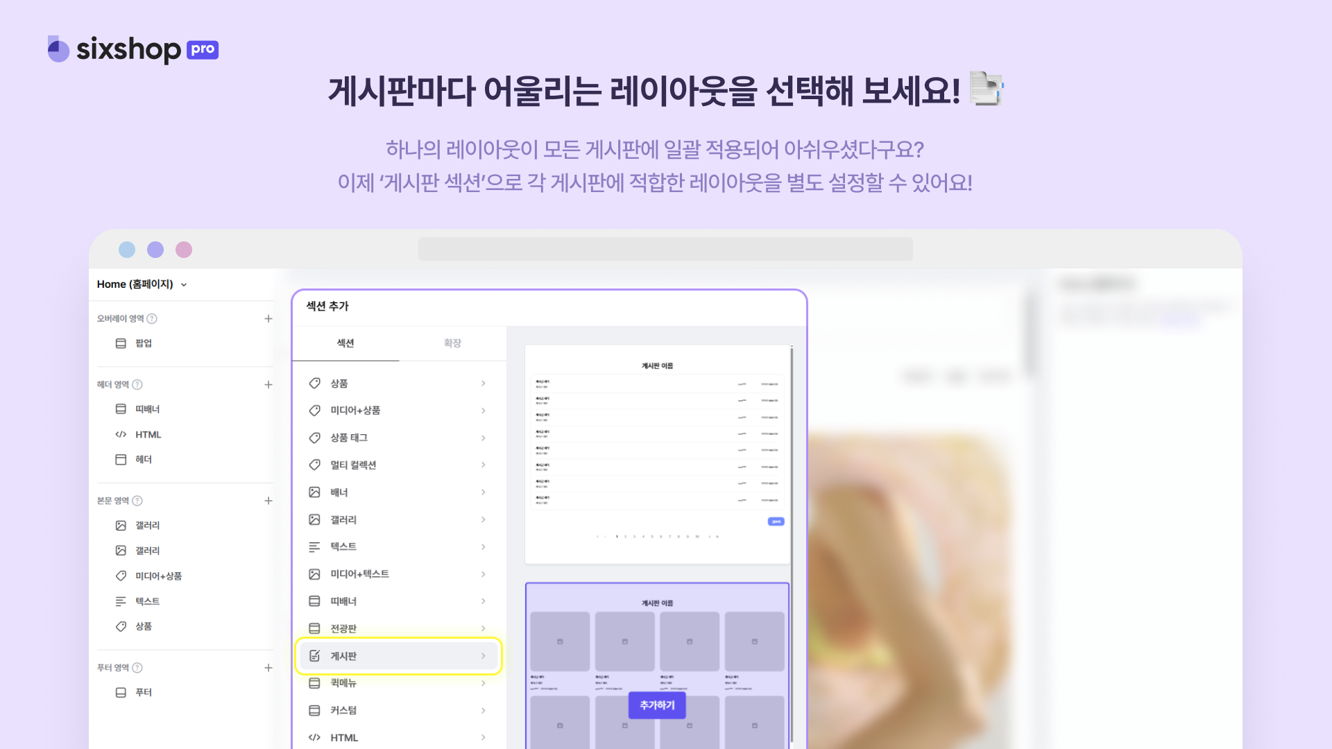μλ‘κ² μΆκ°λ κ²μν μΉμ μΌλ‘, κ° κ²μνμ λ± λ§λ λ μ΄μμμ κ³¨λΌ μ€μ ν΄λ³΄μΈμ. κ²λ€κ° μΌλ° 컀μ€ν νμ΄μ§μμλ λ€μν μΉμ κ³Ό κ²μνμ μ‘°νλ‘κ² κ΅¬μ±ν μ μμ΄μ μ¬λ¬ κ²μνμ μ΄μνλ μ¬μ΄νΈλΌλ©΄ λμ± λ§μ‘±νμ€ κ±°μμ. ππ«