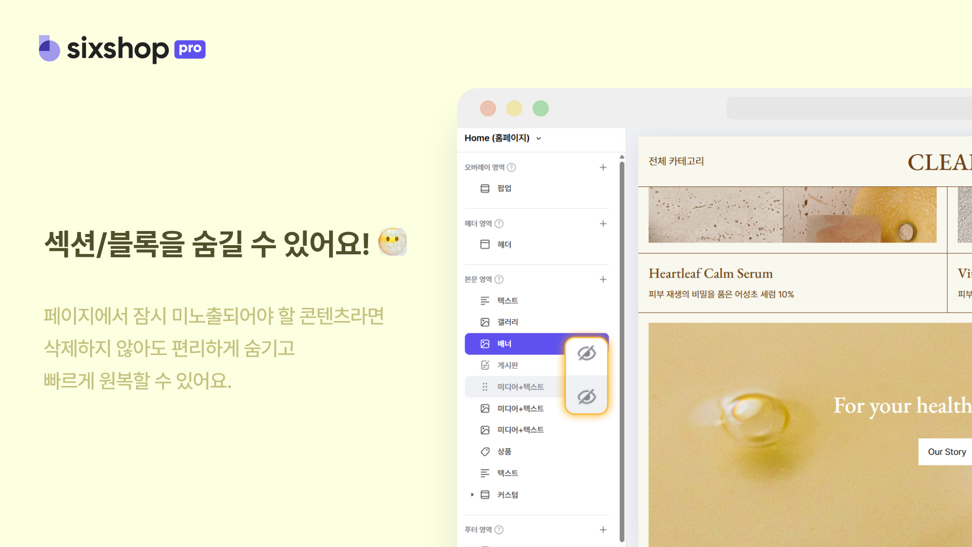 μλν° μλ¨ [μΉμ ] ν΄λ¦ ν, μ¨κΈ°λ €λ μΉμ /λΈλ‘μ μ°μΈ‘ λ λͺ¨μ μμ΄μ½(ποΈ)μΌλ‘ λ ΈμΆ μνλ₯Ό κ°νΈνκ² λ³κ²½ν μ μμ΄μ.