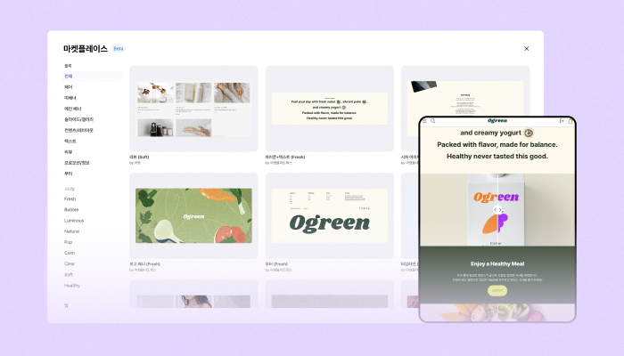 제작은 그대로 간편하게, 디자인은 더 다채롭게! 이제 내 브랜드에 딱 맞는 웹사이트를 더 쉽게 만들 수 있어요.필요한 블록만 쏙쏙 골라 쓰는, 블록 마켓플레이스 지금 바로 체험해보세요!