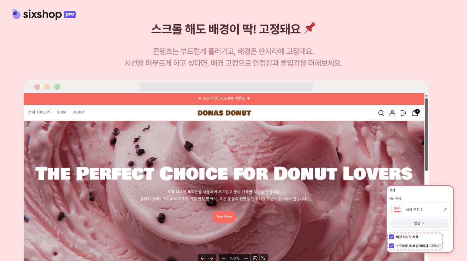 ์คํฌ๋กค ํ ๋ ๋ฐฐ๊ฒฝ ์ด๋ฏธ์ง๋ฅผ ๊ณ ์ ํ๊ณ , ๋ ์ธ๋ จ๋ ์ฐ์ถ์ ์์ฑํด ๋ณด์ธ์!