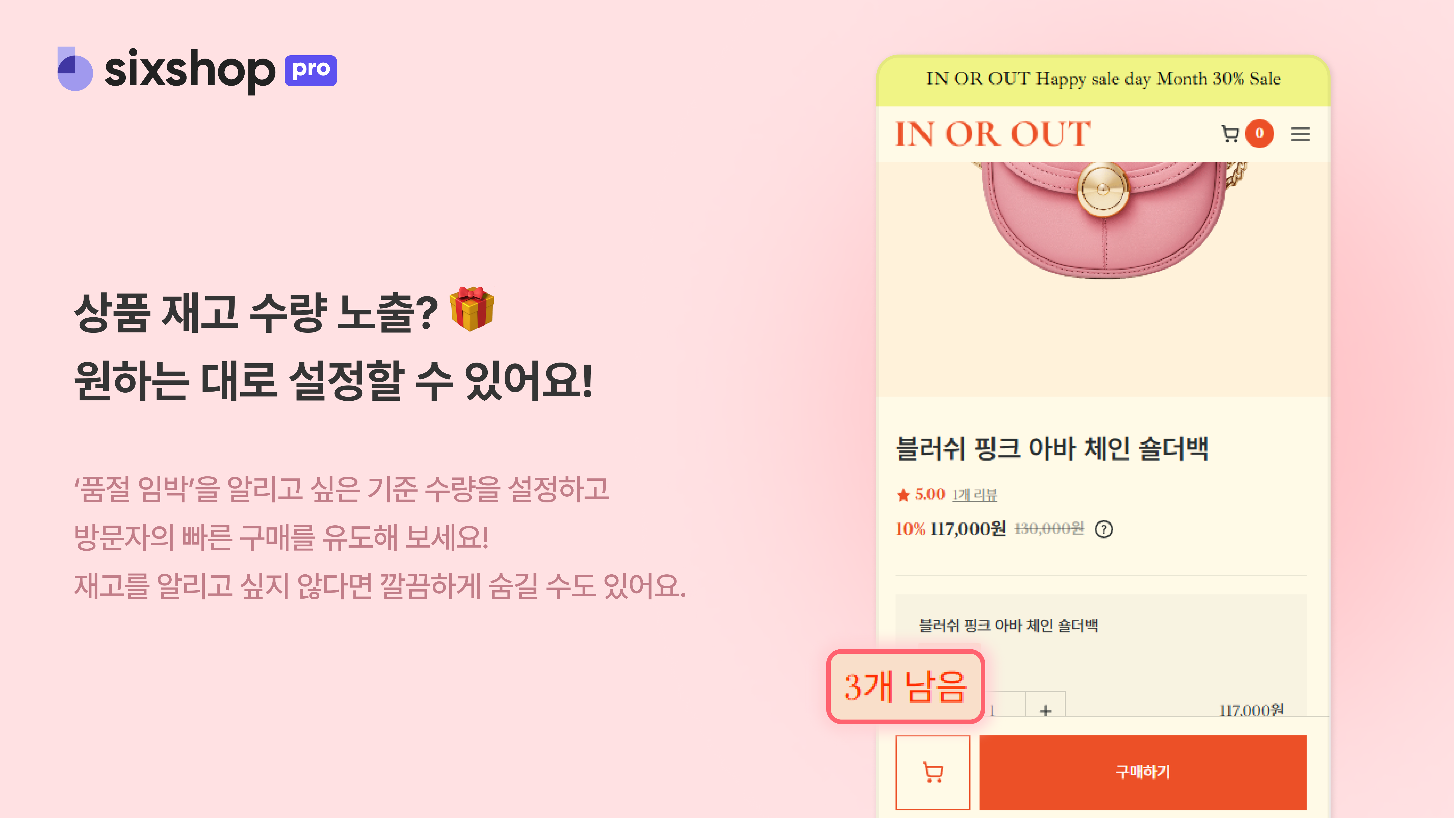 빠른 구매를 유도하는 재고 노출 기능이 강력해졌어요!