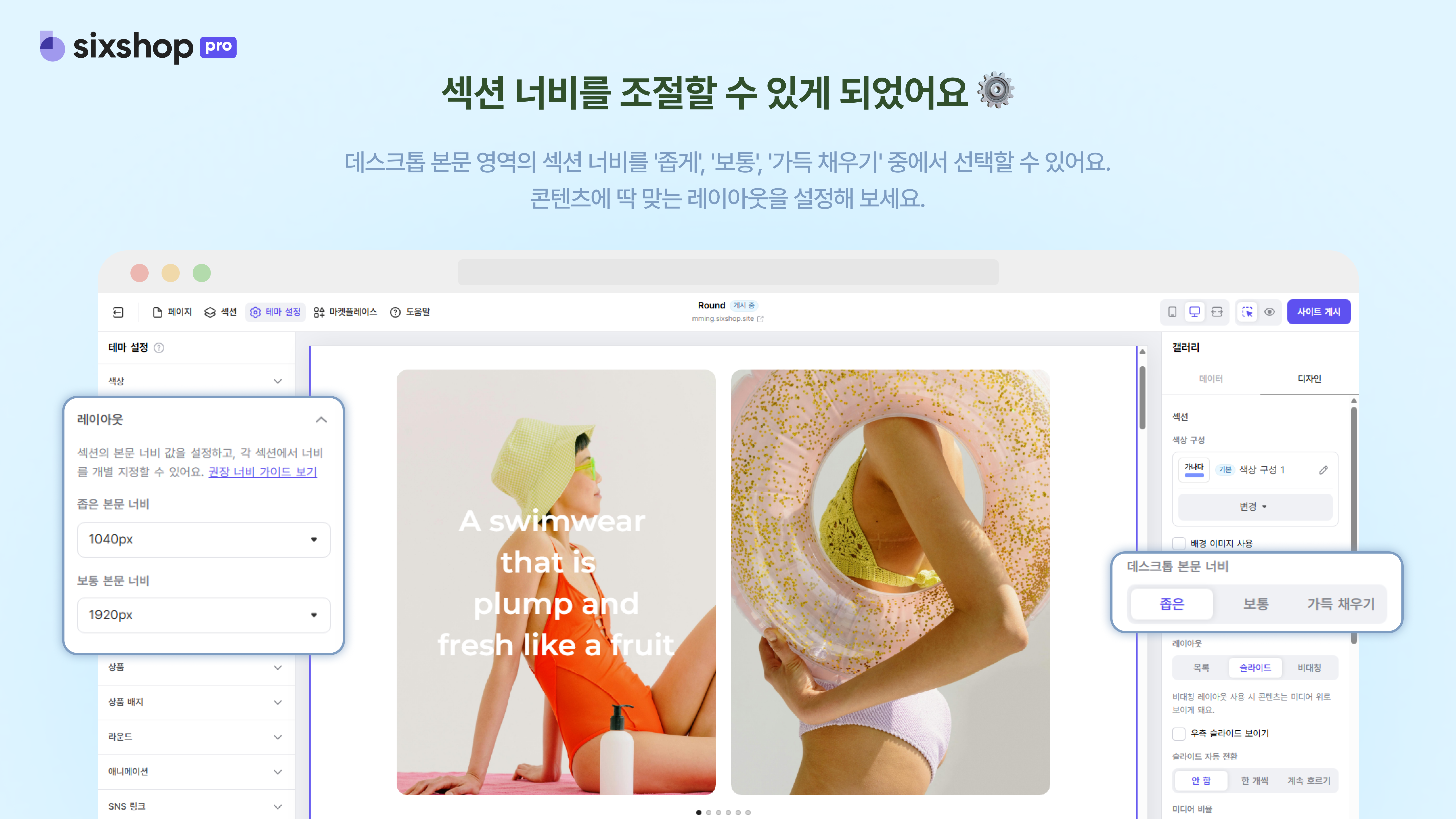 ์ด์ ๊ฐ ์น์ ๋ง๋ค '์ข๊ฒ', '๋ณดํต', '๊ฐ๋ ์ฑ์ฐ๊ธฐ' ์ค์์ ๋๋น๋ฅผ ์์ ๋กญ๊ฒ ์ ํํ ์ ์์ด์.